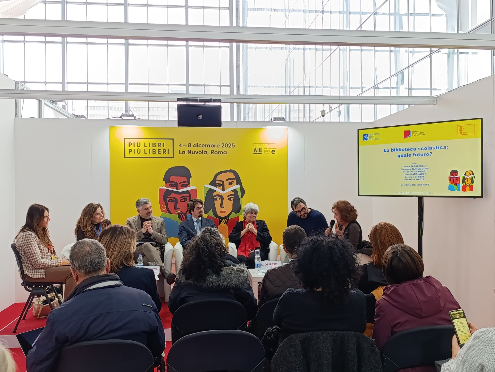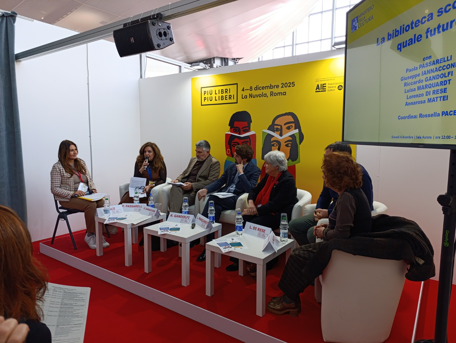 Grande partecipazione per l’incontro “La biblioteca scolastica: quale futuro?” dove sono intervenuti Paola Passarelli (Direttrice generale Biblioteche e Istituti culturali del MiC), Giuseppe Iannaccone (presidente del Centro per il libro e la lettura), Riccardo Gandolfi (soprintendente archivistico e bibliografico Lazio), Annarosa Mattei (scrittrice), Luisa Marquardt (bibliotecaria) e Lorenzo Di Rese (docente), con il coordinamento di Rossella Pace.