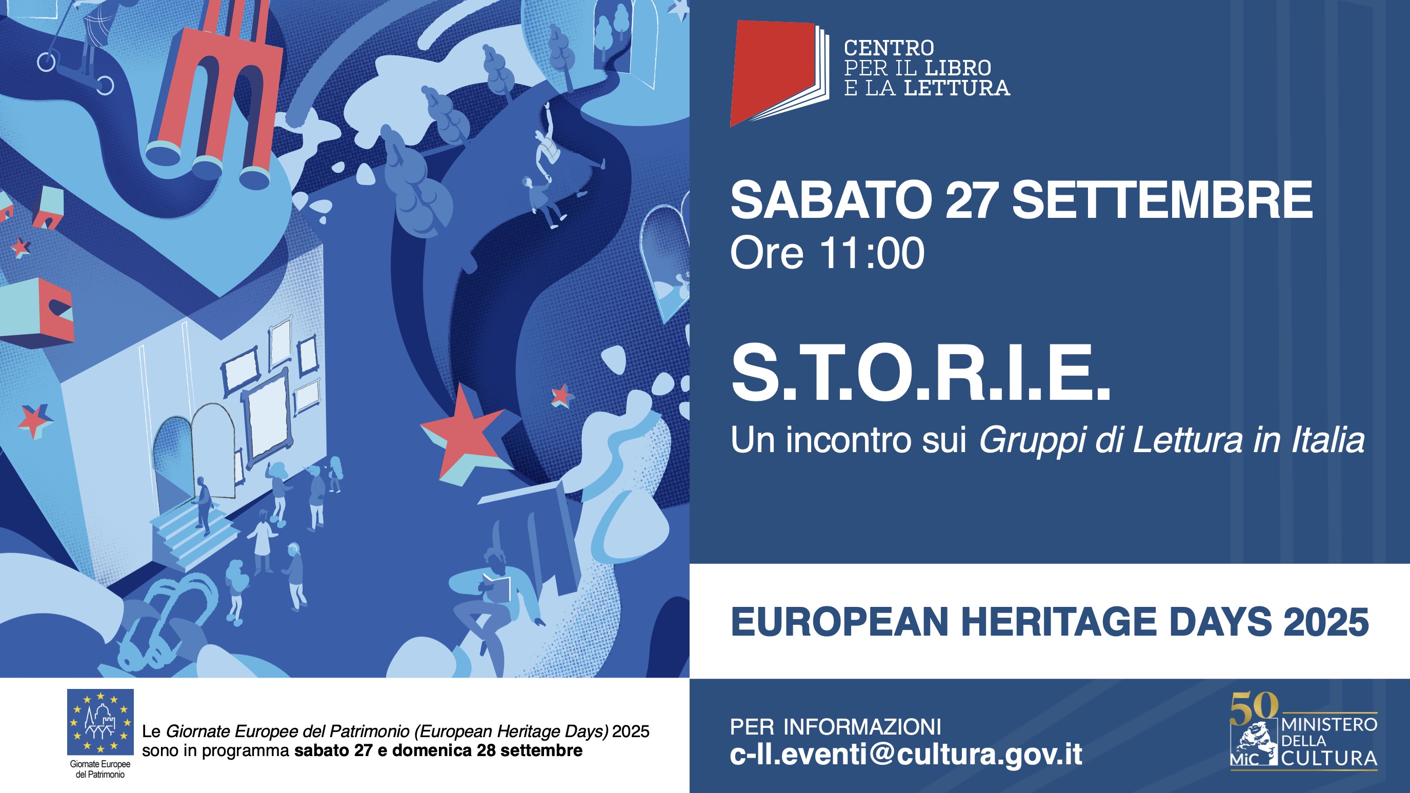 Il Centro per il libro e la lettura, in linea con la specificità del proprio ruolo, ospita la mattina di sabato 27 settembre, a partire dalle 11:00, la presentazione on line su piattaforma Zoom dei primi risultati della ricerca S.T.O.R.I.E. Storie Trasformative, Opportunità, Relazioni, Inclusione ed Emozioni, la prima indagine nazionale sui gruppi di lettura in Italia, promossa dall’Associazione degli editori indipendenti (ADEI) con il sostegno del Centro per il libro e la lettura e condotta dal Laboratorio di Biblioteconomia sociale e Ricerca applicata – BIBLAB della Sapienza Università di Roma.